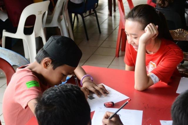 Para sukarelawan memulakan sesi pengajaran dengan membimbing kanak-kanak menyiapkan lembaran kerja yang diberikan. Pengajaran satu sama satu ini membolehkan pembelajaran peribadi kanak-kanak berdasarkan rentak mereka sendiri.